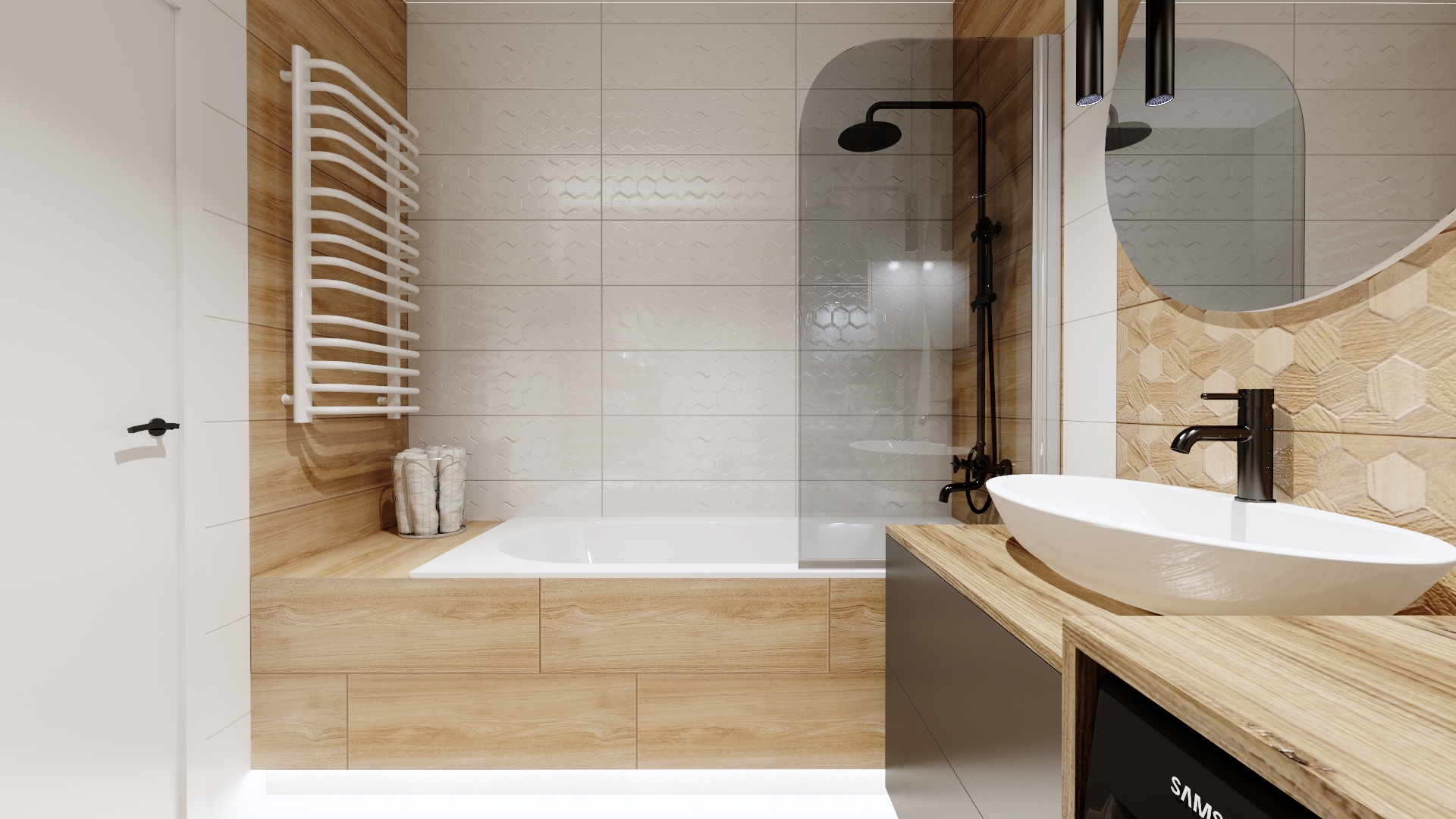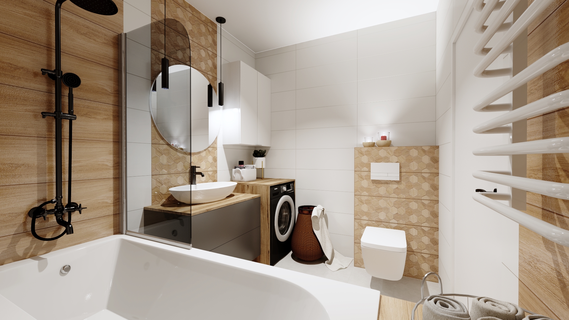 Oferta przedstawia gotowe mieszkanie, projekt wykończenia „pod klucz” wraz z zabudową kuchenną, łazienkami – Ty wnosisz tylko walizki J. WIZUALIZCJA POGLĄDOWA.