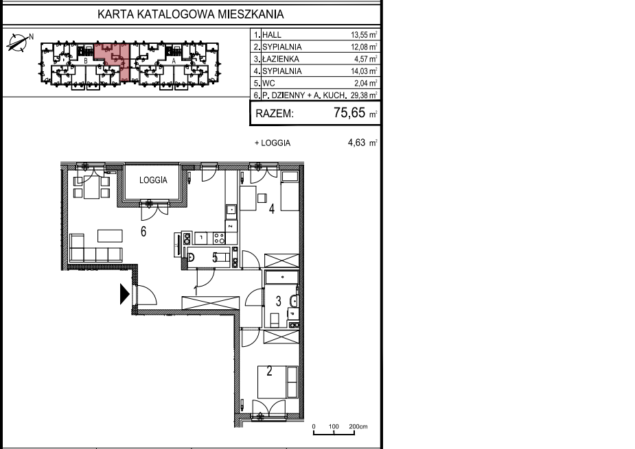Mieszkanie bardzo przestronne o powierzchni 75,65 m2 w którego skład wchodzi: przestronny 29 m2 pokój dzienny z aneksem kuchennym, wc 2m2 i łazienka 4,5m2 oraz 2 przestronne sypialnie 14m2 i 12m2. Poczucie przestrzeni zapewnia 13m2 holl i dodatkowa logiia 4,63m2.